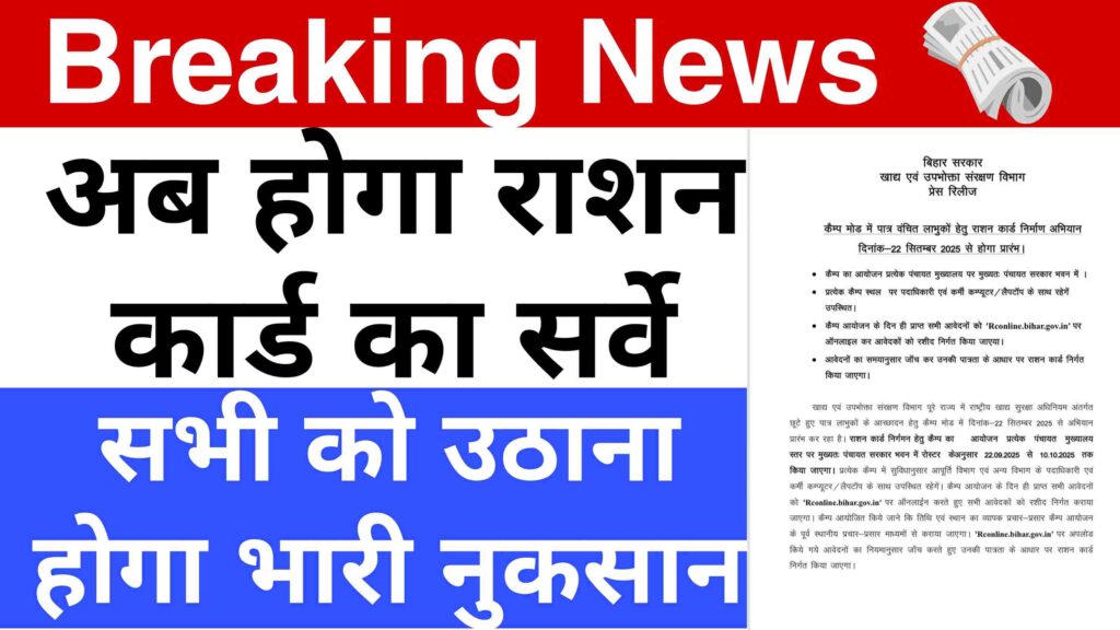 बिहार में राशन कार्ड सर्वे महा अभियान 2025 दोस्तों, बिहार सरकार एक बहुत बड़ी पहल करने जा रही है। अब